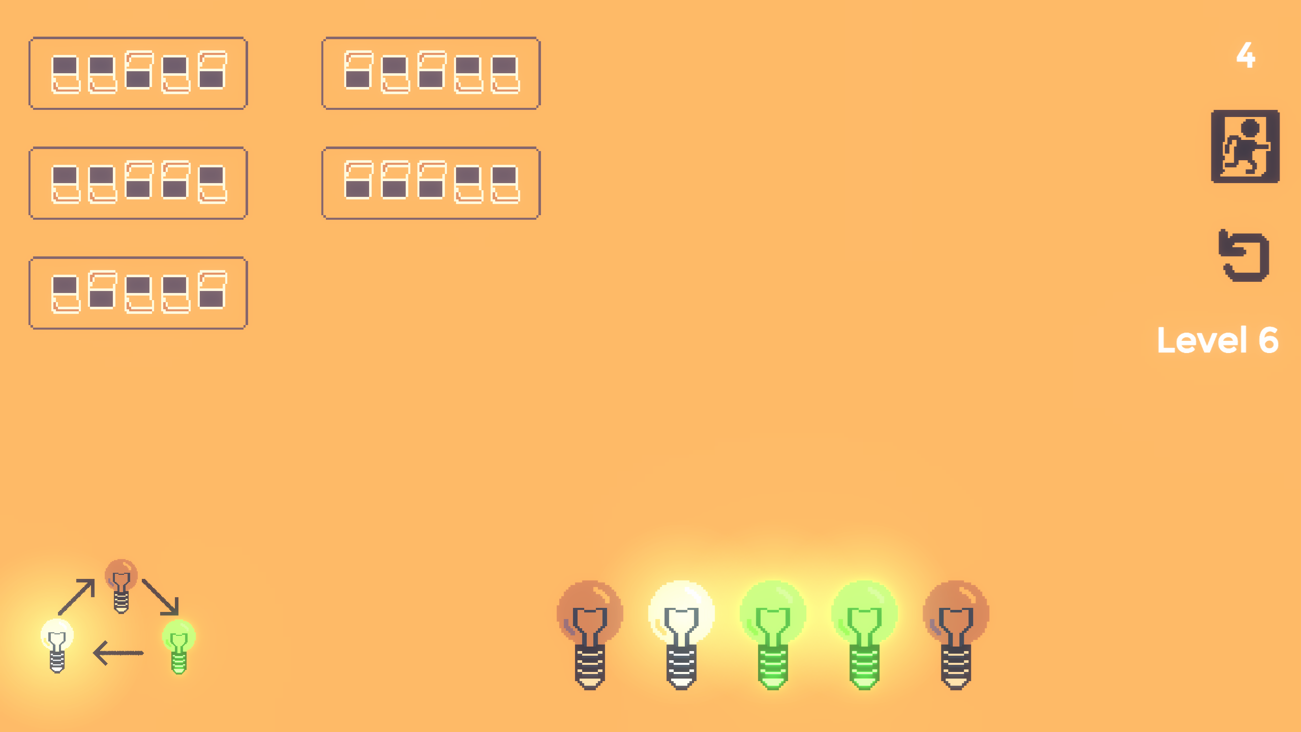 Drag the switches to change the lights. Light all bulbs to complete the level.